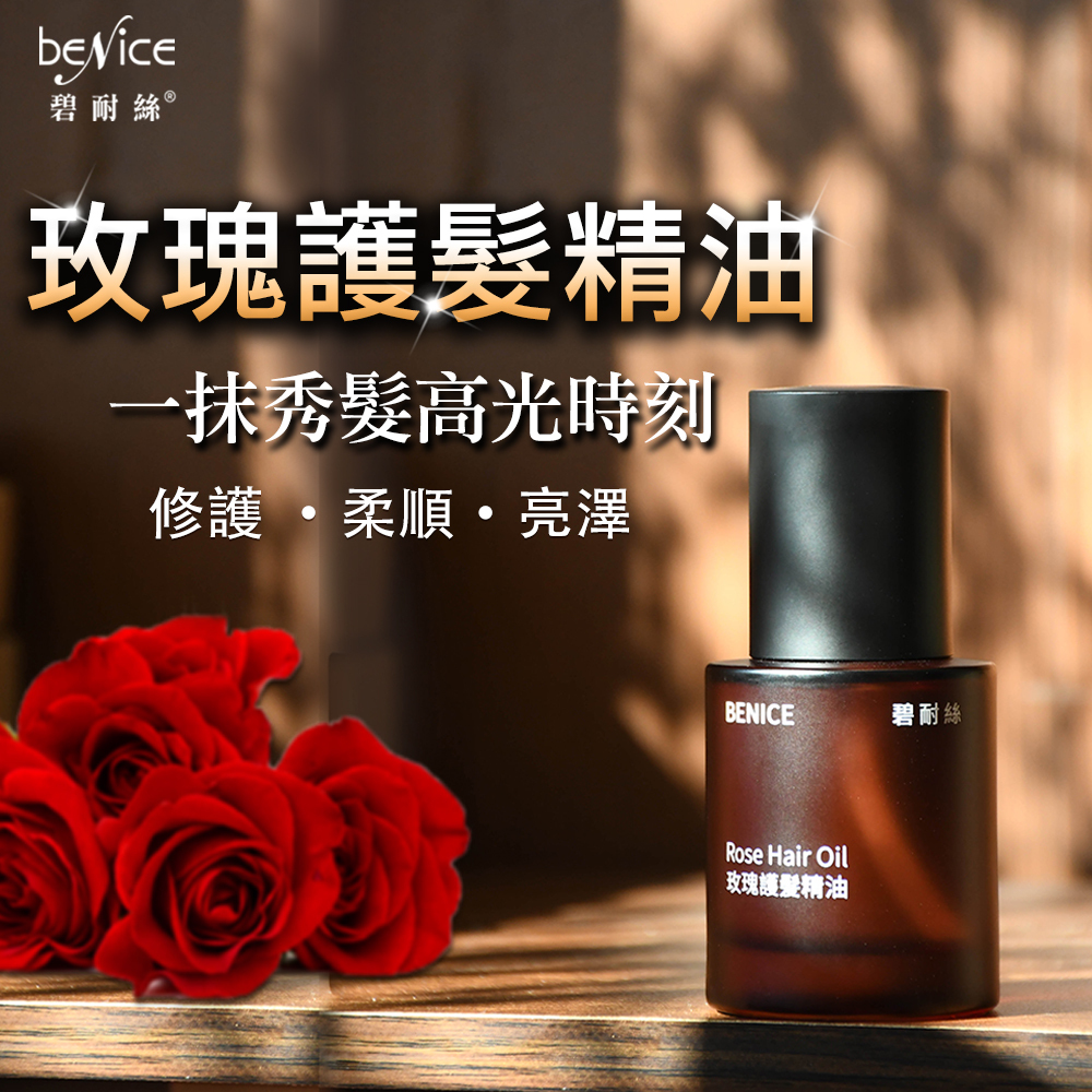 一抹潤澤,一縷髮香,為日常注入柔奢光采。Benice 玫瑰護髮精油蘊含山茶花、大馬士革玫瑰、維生素E、荷荷巴油與摩洛哥堅果油等五大植萃修護成分,搭配小分子滲透科技,深入髮芯,強韌髮絲結構、撫平分叉毛躁,還原彈潤光澤。清透水感質地潤而不黏,只需 2cc 即可塗抹全頭,免沖洗不厚重,長效留香。